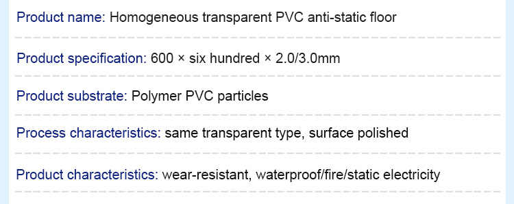Homogeneous and transparent PVC anti-static floor