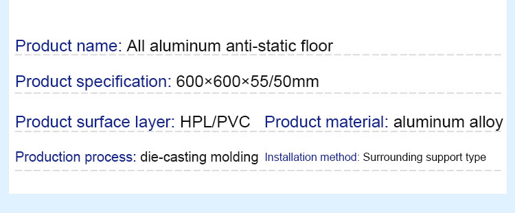 All aluminum anti-static floor, grade 8.8